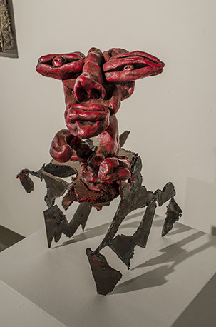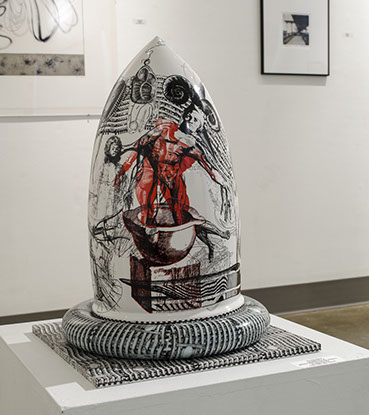 Catharsis through externalization of both personal and social issues is the driving force behind my work. The focus is to take whatever particular issues that are currently causing angst or vexation and dealing with them in a constructive manner, a type of venting that attempts to communicate with the audience through visual means that which I would never divulge directly to a stranger through verbal means. Traditional ceramic methods are often combined with unconventional surface treatments and mixed media. I view the clay structure as somewhat of a three-dimensional canvas, incorporating whatever other media I feel are most appropriate for each specific piece.