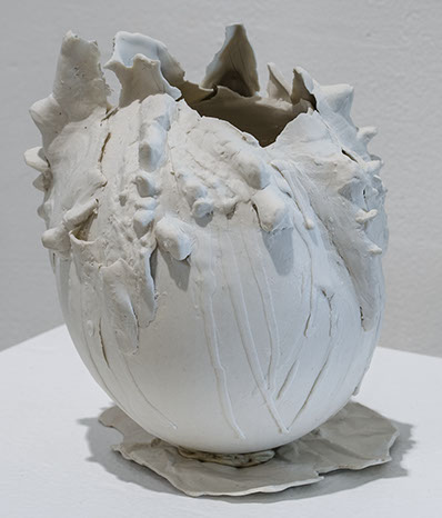 While investigating an interest in plasticity the work produces a continual shift between surface, texture, color, and object. Each vessel provides a contemporary sense of life that is very personal and universal at the same time.