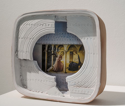 I research and work from written and visual sources that I collect for specific pieces and projects. I search for ways of integrating them in a fresh and coherent statement. Everyday imagery has always been a significant part of my work. These familiar images are powerful symbols. Symbols can be transformed and reinvigorated when used in different contexts. I remain open to new ways of making the art process a bridge between concept and finished product.